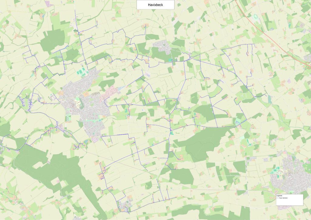 Zunächst wurden 89 Hausanschlüsse im östlichen und südlichen Bereich der Gemeinde realisiert. Bis Oktober 2023 konnten bereits 169 Hausanschlüsse realisiert werden. Die übrigen Adressen im nördlichen und westlichen Bereich von Havixbeck konnten im Sommer 2024 erschlossen werden.